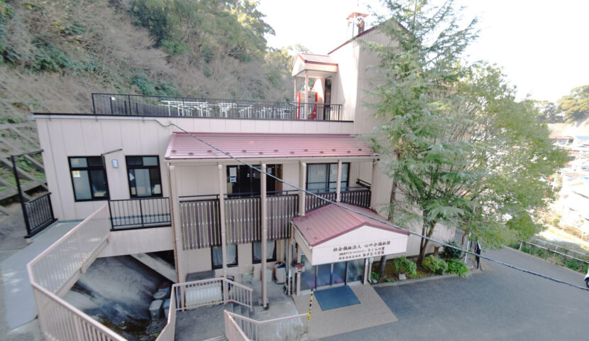 - 坂の中腹の住宅街を右折し、道なりに歩いた突き当りにあすなろ学苑の入っている心の会福祉館があります。(あすなろ学苑 2階)